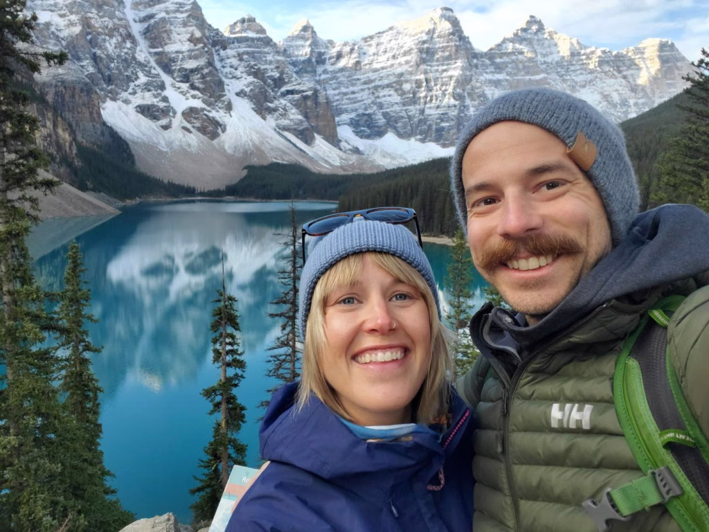Meredith and partner at Moraine Lake, Alberta, Canada